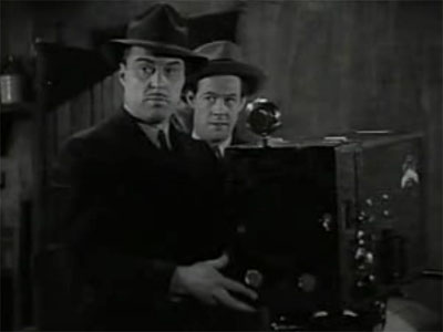 Although Richmond carries the bulk of the serial’s dialogue scenes, Spy Smasher’s supporting cast in an excellent one. The henchman pack is strong, led by the cagy, quiet-spoken Paul Bryar, who is very effective as in an underplayed way. Tom London and Richard Bond also appear throughout the serial as subordinate action heavies, while Crane Whitley, Carleton Young, and George J. Lewis have smaller showcases as other points in the cliffhanger. The chief villain, Hans Schumm as the Mask, does little more than give orders and concoct schemes for his henchmen to follow, but is properly snarling and arrogant in his part, with flashes of fiendish glee; unlike some serial brains heavies, his hulking physical presence is fully as intimidating as his glowering facial expressions. Tristram Coffin is convincingly suave and ingratiating as Drake, the friendly television reporter who is really the Mask’s top espionage operative, while John James–usually a clean-cut juvenile in Republic’s B-westerns–is good as his furtive assistant.