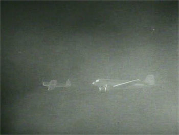 Above: Scenes from the foggy plane-rescue sequence.