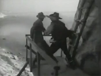 The aforementioned Chapter Eleven chase scene comes on the heels of a very impressive fistfight in a fisherman’s shack, which ranks as one of the best of the set-destroying fights so favored by Spencer Bennet, Mystery Island’s co-director. It’s only one of many such highlights throughout the serial; others include the fight in Lance Reardon’s lab in Chapter One, a lengthy fight between Reardon and a thug (Fred Graham) at an old winery in Chapter Four, Reardon’s fight with Mephisto and two of his men in a volcanic cavern in Chapter Twelve, and a battle between Reardon and Mephisto at a mountain cabin in Chapter Thirteen.
