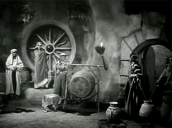 Kenne Duncan has a good role as Nyoka’s tough and loyal follower Abou, while George Lewis is noticeably sinister in his small role as Cassib’s lieutenant Batan. George Renavent is enjoyably hammy in his few scenes as Vultura’s oily major-domo, Forrest Taylor pops up as a translator in Chapter Fourteen, John Bagni plays another one of Nyoka’s Bedouin friends, and John Bleifer has a brief but vivid turn as a villainous Arab street merchant in the first chapter. Jay Silverheels, star Clayton Moore’s eventual companion on the Lone Ranger show, is frequently credited as playing one of the Tuaregs, but I’ve never been able to spot him under the tribe’s burnouses and face-paint.