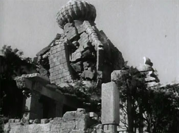 World War Two has recently ended, and, in San Francisco, the members of the “United Peace Foundation” have gathered to make provisions against future outbreaks of global hostility. One of the Foundation’s biggest worries is Sir Eric Hazarias (Lionel Atwill), a supposedly-dead international arms broker who just might be still alive–and up to mischief–in the Himalayan jungle province of Pendrang; the Foundation soon dispatches agent Rod Stanton (Russell Hayden) to Pendrang, with instructions to track down Sir Eric and thwart his plans. The professional “warmonger,” it transpires, is trying to get his hands on a native treasure called the “Glowing Goddess,” which contains an element called “Meteorium,” an element that provides a defense against the atomic bomb and would allow a nation to launch atomic attacks on its neighbors without fear of retaliation. Sir Eric plans to sell this dangerous discovery to the highest bidder, and is duping unwitting archeologist Doctor Elmore (George Eldredge) into uncovering the Lost City of the Jungle in which the Goddess lies hidden. Stanton, with the help of fellow agent Tal Shan (Keye Luke) and Elmore’s daughter Marjorie (Jane Adams), must convince Elmore that his kindly colleague Sir Geoffrey London is really the notorious Hazarias, while battling Sir Eric’s henchmen and dealing with the attempts of Pendrang’s mercenary ruler Indra (Helen Bennett) to profit from the whole situation.