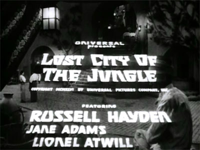 Lost City of the Jungle is no classic, but it is a cut above The Royal Mounted Rides Again, The Scarlet Horseman, and some of the other serials from Universal’s “last gasp” years; its locales and its cast, and its surge of energy in the later chapters, make it enjoyable viewing despite its flaws. In fact, had Lionel Atwill been able to complete the serial, it might have come close to holding its own against earlier and better Universal chapterplays.