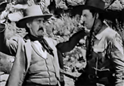 Above: Shots from the sequence that introduces our hero, in which swaggering outlaw Edmund Cobb meets an unexpected doom at the guns of self-proclaimed “peaceable man” Bill Elliott.