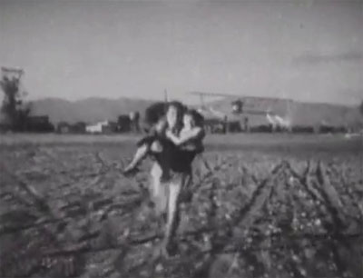 Above: John Wayne, carrying Dorothy Gulliver, tries to stay ahead of the Eagle’s plane.