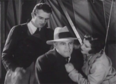 Despite the vivid performances of other cast members, it’s Eagle’s trio of offbeat sidekicks that steal the show. The gigantic Ivan Linow is physically perfect as the strong man, and is given plenty of opportunities to toss stuntmen around like bales of hay and engage in other Herculean heroics. His thickly-accented and occasionally clumsy line delivery don’t damage his performance at all; both seem well-suited to his dependable but slow-witted character. Rubber-faced James Bradbury Jr. is also wonderful as the glib, eternally self-confident ventriloquist, who–like Linow’s strong man–repeatedly aids the good guys with his peculiar skills. Most memorable of all is “Little Billy” Rhodes as the swaggering, cigar-chomping midget, continually bouncing hard-boiled dialogue off the strong man (“Ya big palooka!”), talking tough to characters three times his size, and getting irritated every time someone mistakes him for a child (although he turns this confusion to advantage in one scene, pulling off a bizarre but successful masquerade as an abandoned baby).