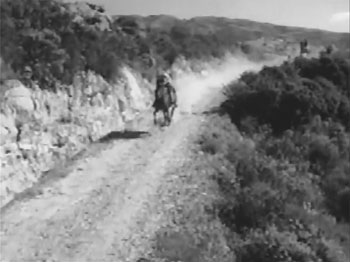 The serial includes some memorable pieces of non-fistfight action as well, among them Van Sickel’s spectacular leap through an opaque window to knock out Graham in Chapter Six, the cross-country car chase in Chapter Four, the lengthy horseback chase in Chapter Nine, and the brief shootout in Chapter Fourteen that has a rifle-toting Geary trying to prevent Richmond and Cooper’s rowboat landing; the latter sequence makes particularly good use of the shores of Lake Sherwood.