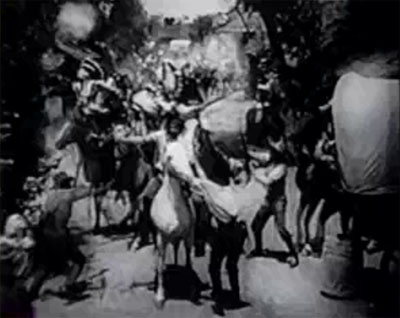 The serial’s chapter endings feature some good situations, though far too many of them are resolved by having the heroes simply survive their danger (a standard shortcoming of Universal serials). The flood sequence that closes Chapter Nine is memorable, despite its use of stock footage; the Chapter Three ending, with a wagon containing Brown and Eddy Waller plunging off a cliff, is also very good (and, unlike most such catastrophes in the serial, actually has serious repercussions for one of the characters involved). Perhaps the best cliffhanger is the Chapter Eight one, with heroine Eleanor Hansen dodging out-of-control wagons in the street at Gold Creek; it’s very well-staged and apparently carried off with very little use of stock footage or process-screen shots.