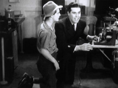 Above: Frankie Darro watches as George J. Lewis enthuses about his invention.