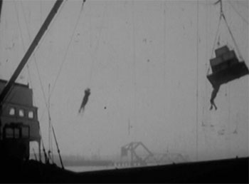 Other standouts include the extended fistfight in the dockyards in Chapter Four–with our trio of heroes taking on Fred Kohler and Max Wagner–and the well-staged and well-shot mass attack on Henry B. Walthall’s house in Chapter Eleven, with the thugs attempting to break in from all sides and Lewis, Darro, and Rinty desperately trying to stop them. Lewis’ final pursuit of the exposed Hale Hamilton, with a grisly finish for the villain in the harbor, is also memorable. Yakima Canutt, George Magrill, Kermit Maynard, and others handle the dangerous stunts, but the actors–in typical Mascot fashion–seem to handle a good deal of the fights and chases themselves.