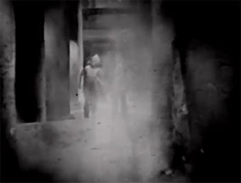 Ernie Adams appears very briefly as a circus roustabout in the first chapter, while Harry Holman is amusing as the corpulent and excitable circus manager. Young Mickey Rooney (yes, the Mickey Rooney) has a prominent role in Chapter One as a feisty young fan of Beatty’s. Another future celebrity, George “Gabby” Hayes, appears as a talkative dirigible passenger in the first chapter, while Lloyd Ingraham is the dirigible’s captain and Lloyd Whitlock a panic-stricken crewman. Mickey Rentschler is another of Beatty’s youthful fans in Chapter One, and Crauford Kent plays the ill-fated Professor Robinson. Frank Lanning pops up briefly as the (apparently) only surviving inhabitant of Kamor. Only surviving human inhabitant, that is; I’m unsure of who plays the gorilla that haunts the city, but his performance is very lively. The serial’s genuine animals are supplied by the Hagenbeck-Wallace Menagerie.