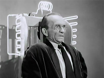 The plot threads surrounding the Wizard suspects are also terribly mishandled; Barry Brown’s suspicious broadcasts (which leak information to both the Wizard and Batman) are never satisfactorily explained, while the crippled Hammil’s temporary cures via his rejuvenation machine–and his crippled status itself–are completely forgotten in the last two chapters, which have the Professor walking around nimbly in front of the other characters, none of whom even comment on his sudden recovery. In fairness, many of Mascot’s serials (and a few of Universal’s) featured similarly unaccountable suspect behavior and equally large plot holes, but those chapterplays’ narratives moved at such breakneck speed that the audiences were kept from focusing on the logic gaps; in a plodding affair like Batman and Robin, there’s more time to notice (and get irritated by) outrageously shoddy plotting. These suspects also engage in little of the entertainingly outrageous behavior favored by Mascot’s red herrings, rarely interacting with the other characters and performing the same pieces of isolated shtick chapter after chapter (Brown broadcasts, Hammil crabs at his attendant and sits in his rejuvenation chair, and Dunn the detective occasionally pops up at a crime scene). To top off the mystery-villain mishandling, the revelation of the Wizard’s identity involves an outrageous cheat that I suspect even Mascot’s writers would have avoided.