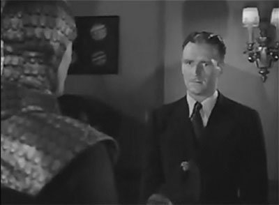 The writers (Royal Cole, Barney Sarecky, Joseph Poland, Lynn Perkins, Albert DeMond, and Basil Dickey) do manage to make these formulaic encounters seem more urgent than the similar duels in many other Republics by actually allowing the Purple Monster to slowly progress towards his goal, instead of being checkmated in every encounter. They also allow the Monster to kill off a high percentage of supporting characters, thus preserving at least some of the sense of menace established in the opening episode; the villain’s poisoning of Professor Crandall (Frederick Howard) in Chapter Six–which first turns the scientist into a murderous madman and then kills him with its after-effects–is particularly scary, effectively venturing back into the first chapter’s horror-movie territory.