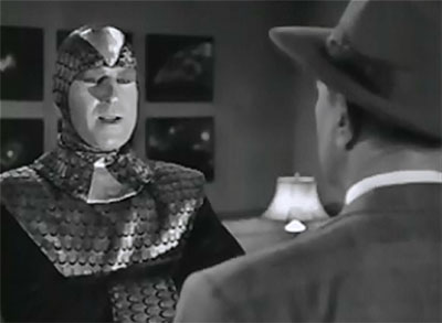 Above: Roy Barcroft (back to camera) tells James Craven of his and the Earth’s impending doom in that eerie first chapter.