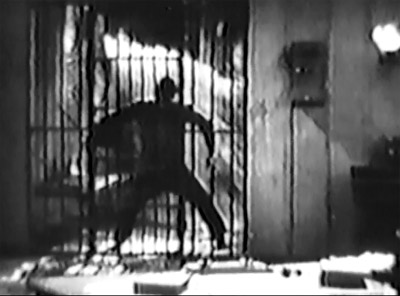 The stock-footage use in the Chapter Thirteen cliffhanger sequence–with Montana and the Parkers riding a canoe down a river in the midst of a forest fire–is also unconvincingly blended with new footage, although it is visually striking. The cliff fall that follows the land-rush sequence at the end of Chapter One features a much better mixture of old and new footage, although the cliff in question is so steep that the hero’s subsequent survival is patently unbelievable. Universal’s standard stampede cliffhanger is on hand, as are a good cabin explosion and a plunge down a mine shaft, but the best of the chapter endings is the flood sequence at the end of Chapter Two, in which flood waters convincingly break down a jail wall and engulf the hero.