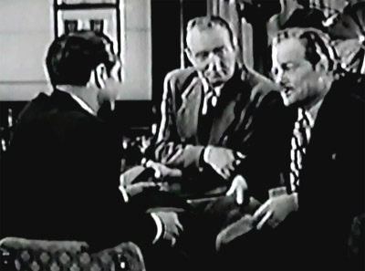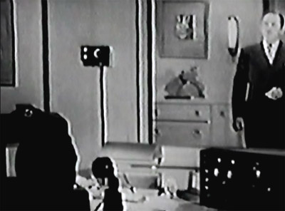 Above: The masked X-1 (seated) gives orders to Jack Ingram via radio and two-way mirror.