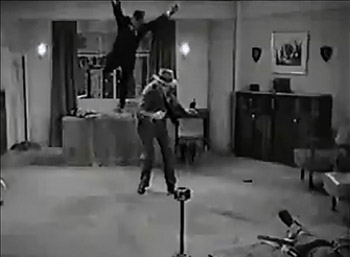 Above: Tom Steele prepares to smash into the heavies’ behind-the-mirror hideout and start another tremendous fight.