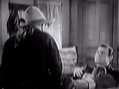 Above: Buck Jones bemusedly parleys with paranoid old-timer Clem Bevans (off-camera).