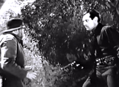 Fuzzy Knight, who would appear as buffoonish sidekicks in all of Brown’s subsequent Universal B-westerns, plays things surprisingly straight as the pugnacious and outspoken scout Deadwood. Knight does play the character’s gruff garrulity for all it’s worth, grumbling boisterously throughout–but is also convincingly tough and level-headed; unlike the stammering clowns Knight portrayed in Brown’s features, Deadwood is fully capable of protecting himself and others in dangerous situations (his rescue of Brown from the Indians and his abrupt dispatching of two Indian pursuers providing two examples). As mentioned, the Idaho Ike character temporarily serves as a foil for Knight’s Deadwood, with lanky character player Jim Toney making the laid-back but dryly sarcastic trapper a good counterpoint to the more bombastic Knight.