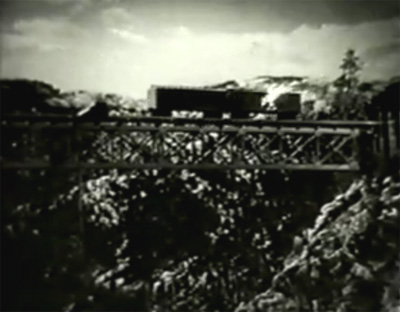 The writers of Winnners of the West–Charles Condon, Basil Dickey, and George Plympton–are decidedly repetitive in their plotting; the action quickly falls into a pattern that has Carter’s gang attacking the railroad and damaging it in some way (blowing a bridge, stealing supplies, etc.), after which Ramsay comes up with a plan for remedying the damage (building a new bridge, journeying to procure replacement supplies)–which in turn leads to another outlaw attack, as the heavies try to thwart Ramsay’s counter-move. Once the follow-up attack is defeated, the villains immediately launch another offensive against the railroad, beginning the cycle all over again. Occasional captures and rescues of various protagonists (one of which brings about the serial’s final showdown) provide the only variations to this formula.