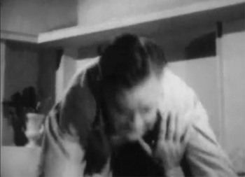 Above: “All right, go ahead and kill yourself. The Army’ll appreciate that; they don’t give a hoot whether they get those planes or not!” Ed (Robert Armstrong) hollers at the seated Dayton (Donald Woods) in typical fashion as Mary (Kathryn Adams) watches).