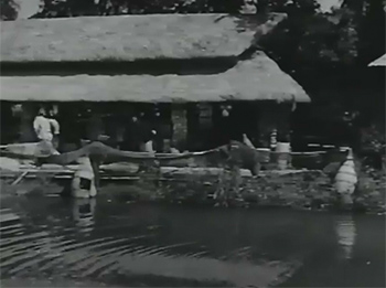 Writer Ronald Davidson does an admirably ingenious job with Trader Tom’s screenplay, concocting a narrative that neatly links up reused sequences from a multitude of serials and makes sense in its own right; he also keeps his usual tendency towards repetitive plotting in check. After introducing his characters and setting up his plot in the first chapter, Davidson devotes the next four episodes to the heroes and villains’ battle over a submerged shipment of poison gas—rehashing several scenes from SOS Coast Guard in the process. Before this duel can become too tiresome, Davidson removes the scene of action to the war-torn Burmatran interior in Chapter Six (in order to utilize stock footage derived from the Republic feature Storm Over Bengal, by way of Drums of Fu Manchu). Tom and Vivian’s inland adventures (centering around their attempts to deliver a vital communication to the rebel-besieged Khan) easily carry the serial all the way to the beginning of Chapter Ten—after which Davidson varies the scenario once again, returning briefly to salvage and smuggling action in the climactic episodes.
