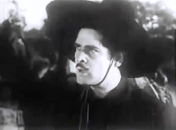 The writers also stumble by deciding to keep the audience guessing as to whether the Black Raiders’ supreme leader is Dolan or Dolan’s rotten nephew Bart (who’s revealed as the immediate boss of the Raiders early on). This is another idea that would also have worked admirably in an hour-long western feature, but is poorly suited to a fifteen-chapter serial; in order to maintain uncertainty as to the identity of the Raider leader, the writers are forced to severely limit Bart’s villainous activities, depriving the chapterplay of a strong central heavy for far too much of its running time. In fairness to the writers, however, this approach might have worked somewhat better had a different actor been cast as Bart (see below). This lack of a formidable villain is accompanied by a lack of interesting victims-of-villainy; the nesters are an interchangeable and sketchily-drawn lot, save for their leader Jed Scott–who is, unfortunately, played by a decidedly uncharismatic actor, making it hard for the audience to get very involved in the group’s plight.