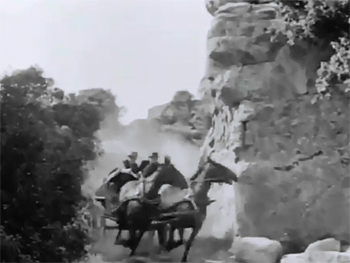 Above: Heroes (left) pursue villains (right) through a rocky portion of Iverson’s ranch, in footage that’s probably recycled from an earlier source, but could be brand-new for all the traces its insertion leaves.