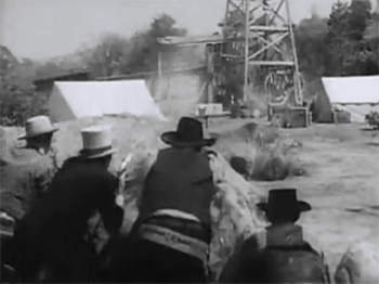 Above: Roy Barcroft tosses dynamite onto the oft-destroyed platform of the oil derrick.