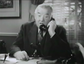 Stocky Victor Zimmerman, as the coolly easygoing Barnard, looks the part of a strong-arm man but gives his character a shrewd and cautious air unusual in a thug; he comes off as particularly cagy when he passes himself off as Taboni’s disapproving brother-in-law in order to claim his fellow-henchman’s body. John Galluadet is irritable, outspoken, aggressive, and intimidatingly confident as the businesslike killer Wilkinson, while George J. Lewis (as another prominent League member named Mason) sneers and snarls with considerable energy before making an early exit from the serial. Johnnie Berkes is shifty but also a little sympathetic as the elderly newspaper-hawker Grubb, who loyally shuffles into the League’s hideout with important messages on a regular basis; interestingly, his character is the only henchman who’s treated with unfailing politeness by Mortis.