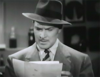 Above left: Kent Taylor examines clues. Above right: Robert Armstrong calls in a description of a suspect.