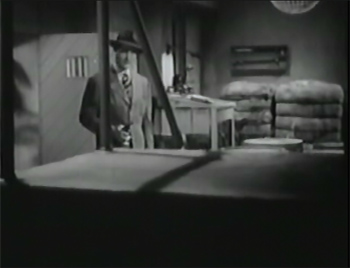 Screenwriters Al Martin, Victor McLeod, George Plympton, and Morgan Cox develop their script’s excellent central premise to very good effect, neatly balancing action, crime detection, tinges of horror, and even touches of humor. Although the serial is not structured around action setpieces in the style of a Republic outing, the scripters still manage to involve their heroes and villains in numerous brawls and gunfights; they also keep the periodic clue-analyzing scenes in the police lab lively enough (and non-technical enough) to be interesting. Horror is provided by Mortis’ sinister means of recruiting henchmen into the League of Murdered Men (said means being gradually revealed to the viewer over the course of the first three chapters); the highly nervous wisecracking of the gangster Taboni (William Haade) as he reluctantly prepares to go through Mortis’ death-and-resuscitation process serves to simultaneously lighten and enhance the tension of the situation, while his enraged post-induction reaction when he learns his continued existence is dependent on Mortis accentuates the horror of the whole Murdered Men setup.