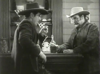 Jack Clifford is the temporarily misguided but honest and canny Sheriff, Forrest Taylor has a colorful bit as a disreputable crony of Bucksin’s, and Ben Taggart is sleekly pompous as a suit-wearing henchman who unwisely attempts to blackmail Chadwick. Jack Rockwell is excellent in an unexpectedly touching bit as a dying henchman, while Ray Teal also appears as an outlaw just long enough to die on-stage. William Gould is the colonel who gives the hero his assignment in the first chapter; George Sherwood and Frank Pershing are other army officers (a lieutenant and a captain, respectively). William Desmond makes two very brief appearances as the town banker and (later) as a different townsman, Harry Tenbrook is a stage driver, Henry Hall a wagon-train leader, and Marguerite De La Motte (a prominent leading lady in the silent era) a café waitress; despite having a grand total of three lines, she’s given very prominent billing, doubtless in recognition of her bygone fame. Bob Baker, coming off an ultimately unsuccessful run as a Universal B-western star, has two scenes as a young Buffalo Bill Cody; his billing, like De La Motte’s, is ridiculously out of proportion to his actual role, although his second scene in Chapter Fourteen does include one of the serial’s most memorable bits of dialogue.