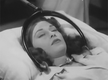 Several of the cliffhangers in Crimson Ghost (like the car-plane collision in Chapter Four or the truck crash in Chapter Ten) are derived from earlier Republic serials; the serial’s new endings are quite plentiful, however–and are quite well-done. The endings to Chapter Two (the hero about to walk into the path of a death ray), Chapter Four (the hero trapped in a gas-filled room as the villain laughs maniacally over the radio), and Chapter Eight (the heroine apparently dying during the control-collar removal process) are particularly good–directed and edited in tensely suspenseful fashion, and fully as exciting as Republic’s more typical explosive cliffhangers. Chapter Seven’s cliffhanger, which has the mind-controlled heroine knocking the hero into a high-voltage generator, is very memorable as well; the fall from the telephone-wire in Chapter Three and the impressive laboratory explosion that concludes Chapter Nine are less unusual, but are still first-rate.