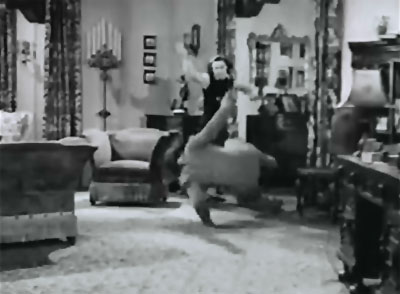 Above: Lorna Gray (undoubled here) flings a surprised Roy Barcroft (doubled by Van Sickel) towards the floor.