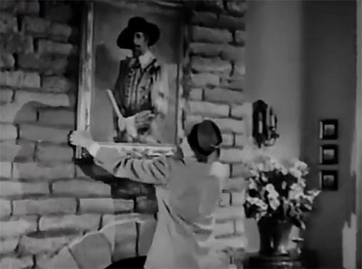 Above: Roy Barcroft purloins a portrait of “Don Q” (the model for the painting was none other than director Spencer Bennet).