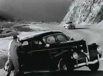 Many of Don Q’s non-stock cliffhangers are terrific; the knife-throwing sequence that ends Chapter Three is particularly memorable, with heroine Dolores (who’s gone undercover as the assistant of a nightclub knife-thrower) being menaced by the murderous Donovan, who’s taken the place of her co-star in order to terminate the knife-throwing act with a fatal “accident;” this sequence is exceedingly well-handled, with good editing, scoring, and wordless acting (on the part of Lorna Gray and Roy Barcroft, both of whom are masked and silent during the scene) making it memorably tense. The ending to Chapter Five, with hero and heroine driving off a cliff when their car is enveloped by a truck tarp released by the fleeing Donovan, is also well-done; the whale-gun scene (Chapter Two), the heroine’s dangle from the curtain of a tenth-story window (Chapter Eight), and the “glass guillotine” sequence (Chapter Eleven) make for strong episode-ending perils as well.