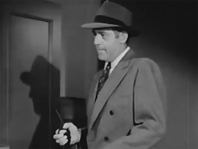 Lovely Lorna Gray, making her final serial appearance before moving up the ladder at Republic as feature-film actress “Adrian Booth” (the name she’s billed under here), is excellent in the serial’s title role. She makes her Dolores seem far more upset about the villains’ evildoing than the typical post-war serial heroine–fittingly, considering her character’s blood connection to said villains’ victims; she comes off as passionately indignant when trying to convince the skeptical police of a deliberate plot against the Quantero family or when defying the heavies. Gray’s performance is far from unrelievedly serious, however; her jaunty enthusiasm as she prepares to face danger and her cheerful exchanges of banter with leading man Kirk Alyn balance out her more intense moments. She also does an excellent job of silently registering alarm and concern even in non-dialogue scenes, such as the knife-throwing sequence mentioned above.