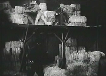 Many of White Eagle’s fistfight scenes (like those in most Horne serials) are staged rather sloppily, with the hero pummeling so many foes at once as to make the whole combat look comically unbelievable. However, there are many good pieces of stuntwork scattered throughout even the most silly-looking fights, courtesy of stuntmen Chuck Hamilton and Bob Woodward; the Chapter Nine barn brawl is particularly good. The fight in Chapter Twelve is not bad either, though marred at its conclusion by the cartoonish way in which the heavies fling their hands in the air and flee after the good guys start shooting at their feet–a typical Horne touch that appears more than once in White Eagle, not to mention several of his other serials.
