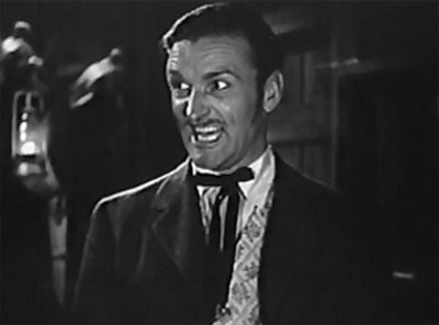 James Craven, as the villainous but outwardly-respectable Dandy Darnell, is equally hammy in his own way–gloating in smugly maniacal fashion over triumphs, lapsing into petulant rage whenever his henchmen bring in reports of failure, and sneering so condescendingly and so harshly at the heroes as to make their unflagging belief in his honesty come off as inexcusable stupidity. As with Craven’s Bellamy in Green Archer and his Shark in Captain Midnight, the actor’s depiction of Darnell makes the villain seem so completely lacking in mental control that it’s impossible to take him seriously as a menace.