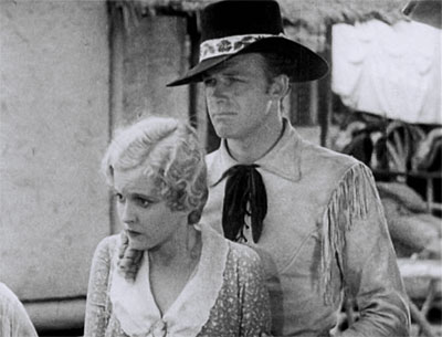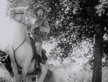 Most of the chapter endings in Bill (save the cabin explosion in Chapter Six) are fairly mundane–Indians jump from a tree onto Cody, Indians swarm in to overwhelm the heroes, the hero is shot from ambush, a burning wagon overturns). The apparent lynching of Dave Archer at the end of Chapter Eight is one of the more memorable chapter endings, as is the Chapter Seven cliffhanger that has an Indian stalking Cody, drawing a bead on him, and (seemingly) shooting him as the picture fades out; this scene is well-shot and is set up in an effectively suspenseful fashion, which makes it more striking than many other Western “apparent shooting” cliffhangers. This sequence would have worked even better with musical accompaniment, but Bill–like other early talkies–has no real music score.