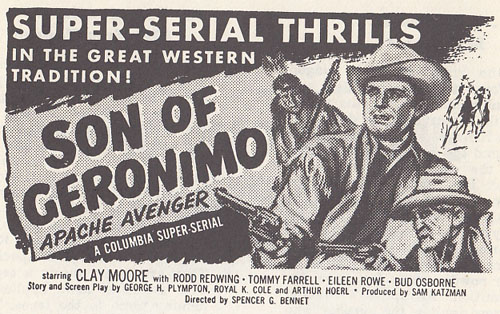 Son of Geronimo ranks as one of the last satisfactory Western serials turned out by either Columbia or Republic; indeed, one could make a strong case for it as the last Western movie serial that works as a whole. Though uneven in places, it holds together quite well, and is, overall, an consistently watchable and entertaining chapterplay, despite the Sam Katzman imprint.