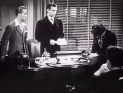 The kid in the first photo identified as Roger Daniels, with the sailor hat, is actually Harris Berger. It’s interesting that Daniels received screen credit for such a small role, while Berger did not receive credit and he had a larger role. In the next photo, the guy with his back to the camera is identified as Gabriel Dell, but he is not Dell. I’m fairly certain he is the character Duke, Jim Bradford’s assistant G-Man, who remains unidentified.