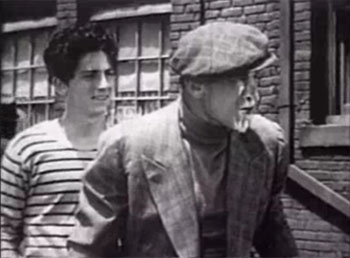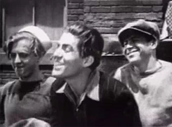Above: Huntz Hall sounds off while Gabriel Dell relaxes.