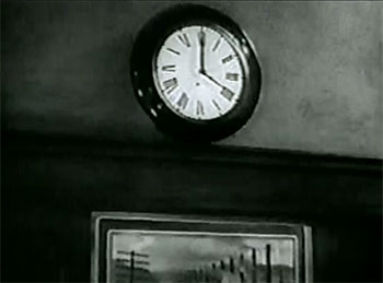 Above: A striking clock (left-hand picture) turns George Eldredge into a stony-eyed, Hypnotrene-controlled menace (right-hand picture).