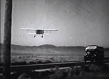 Above left: The plane-bus chase from Chapter Seven. Above right: Edmund MacDonald and Danny Morton descend the stairs into the villains’ Frankenstein-like underground lab; Mauritz Hugo is in the foreground.