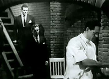 Though outnumbered by dialogue sequences, the action scenes in Mr. M are quite enjoyable when they do occur. Dave Sharpe (who doubles star Dennis Moore), Tom Steele (who doubles co-star Richard Martin and assorted heavies), and Ken Terrell (who also doubles some heavies) give a considerable lift to the serial’s fistfight scenes–even though most of these scenes are cut short before the stuntmen can really get up a good head of steam; among the best of these well-performed but truncated brawls are the Chapter Two fight at the parking garage (which lasts longer than most of the other combats), the brief fight in the living room of the Waldron mansion in Chapter Six, and the Chapter Ten apartment fight. Non-fistfight action highlights include Chapter Two’s car chase along country roads, the Chapter Six car chase down a city street (after the hero has narrowly escaped a drive-by shooting), and the quick gun battle between the hero and two henchmen at a suburban house in Chapter Seven.