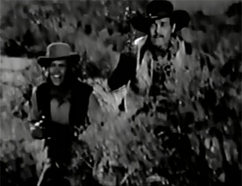 The repetitious and uninvolving plot of Cody is further damaged by Columbia’s obligatory fifteen-chapter format; while the serial is a little lighter on pointless walking/riding scenes than some of Katzman’s other efforts, it’s still noticeably padded in places–particularly doing shootout scenes, which are often paced so slowly (and scored so poorly, with inappropriately sedate stock cues) that they start to seem tedious instead of exciting; it doesn’t help that very few good guys or bad guys receive anything worse than minor flesh wounds in these gunfights. The Chapter Fifteen battle at the Graham ranch–which should have been a rousing climactic combat–is particularly weak, with the outlaws moving at an incredibly sluggish clip as they try to encircle the heroes, and merely clutching their shoulders and walking off-camera whenever they’re hit. The earlier shootout at the ranch (in Chapter Ten) is similarly disappointing, with the villains ploddingly going about their work and then fleeing just as the tempo of the action starts to pick up.
