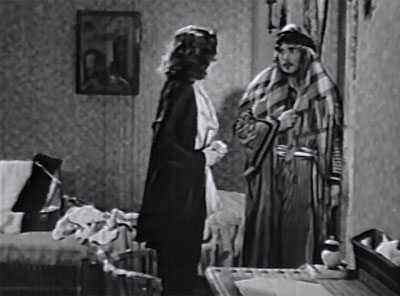Above: Walter Miller, as the disguised and hunted Robert Grant, meets Muriel Armitage (Nora Lane) for the first time, while trying to hide from pursuers.