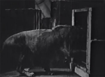 The hulking Tom Santschi turns in a strong and unusually individualized villainous performance as the scoundrel Harris; his character is tough, ruthless, and selfish, but, unlike many serial heavies, never seems to relish nastiness for its own sake. Instead, he performs his dirty deeds in a gruffly matter-of-fact manner, single-mindedly doing whatever it takes to get the diamonds or the letter, but never indulging in exultant sneering; he comes off as more amoral than consciously evil, much like the animals he often uses to do his dirty work. His treatment of Bimi highlights the unusualness of his character; while the typical movie villain regularly mistreats his pet monster and winds up being killed by it in the final reel, Santschi’s Harris is sternly authoritative but never cruel or overbearing when giving orders to his creature, and even looks out for his welfare on occasion; the final scene between the two is quite unexpected and even moving.