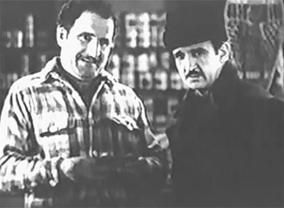 The muddled last-chapter sequence represents one of the serial’s few attempts at a dramatic character moment; other examples include a couple of romantic scenes between heroine and hero (who announces his love for the heroine with almost comical swiftness), the hero’s panicked reaction to the heroine’s injury in one chapter, and a short scene of playful bickering between the heroine and her brother. Overall, though, such character moments are scarcer in Mystery Trooper than in many other serials of the period; aside from the named scenes, there’s little humorous or dramatic interaction between the heroes, and there’s almost no personality conflicts between the villains. This lack of drama probably pleased more than one of Trooper’s cast members; several of the serial’s actors are so obviously uncomfortable with sound technology that they probably wouldn’t have been up to playing more individualized characters anyway (there’ll be more on that subject later).